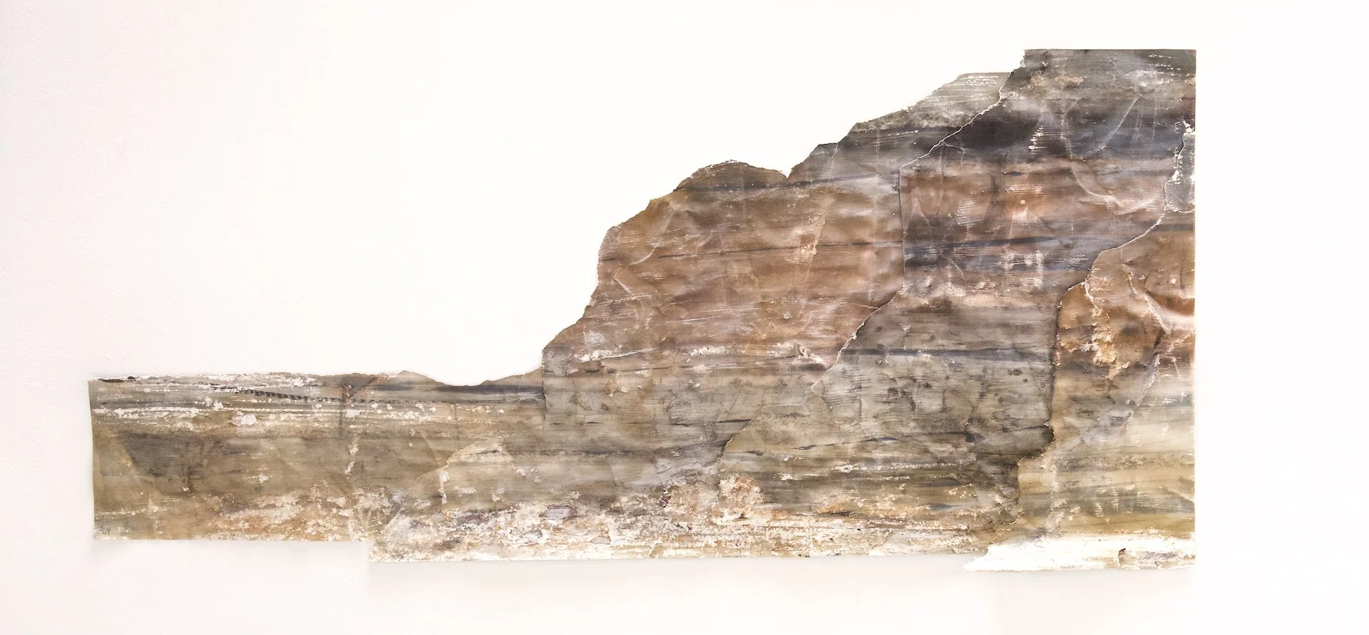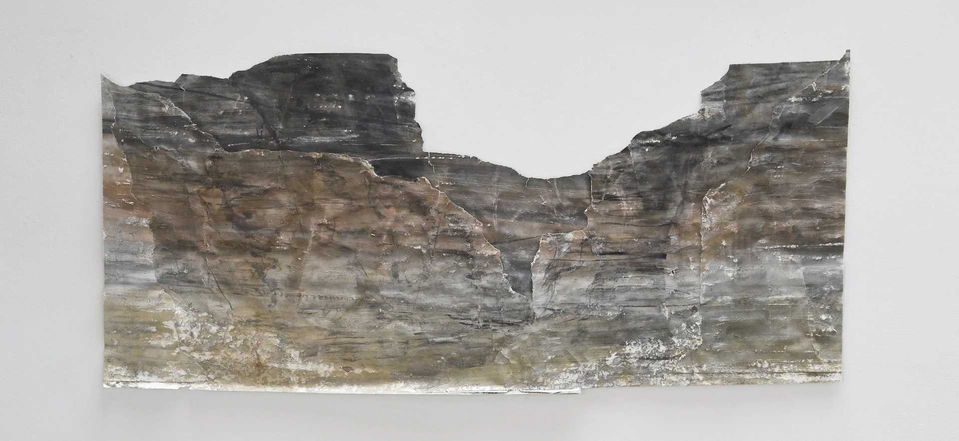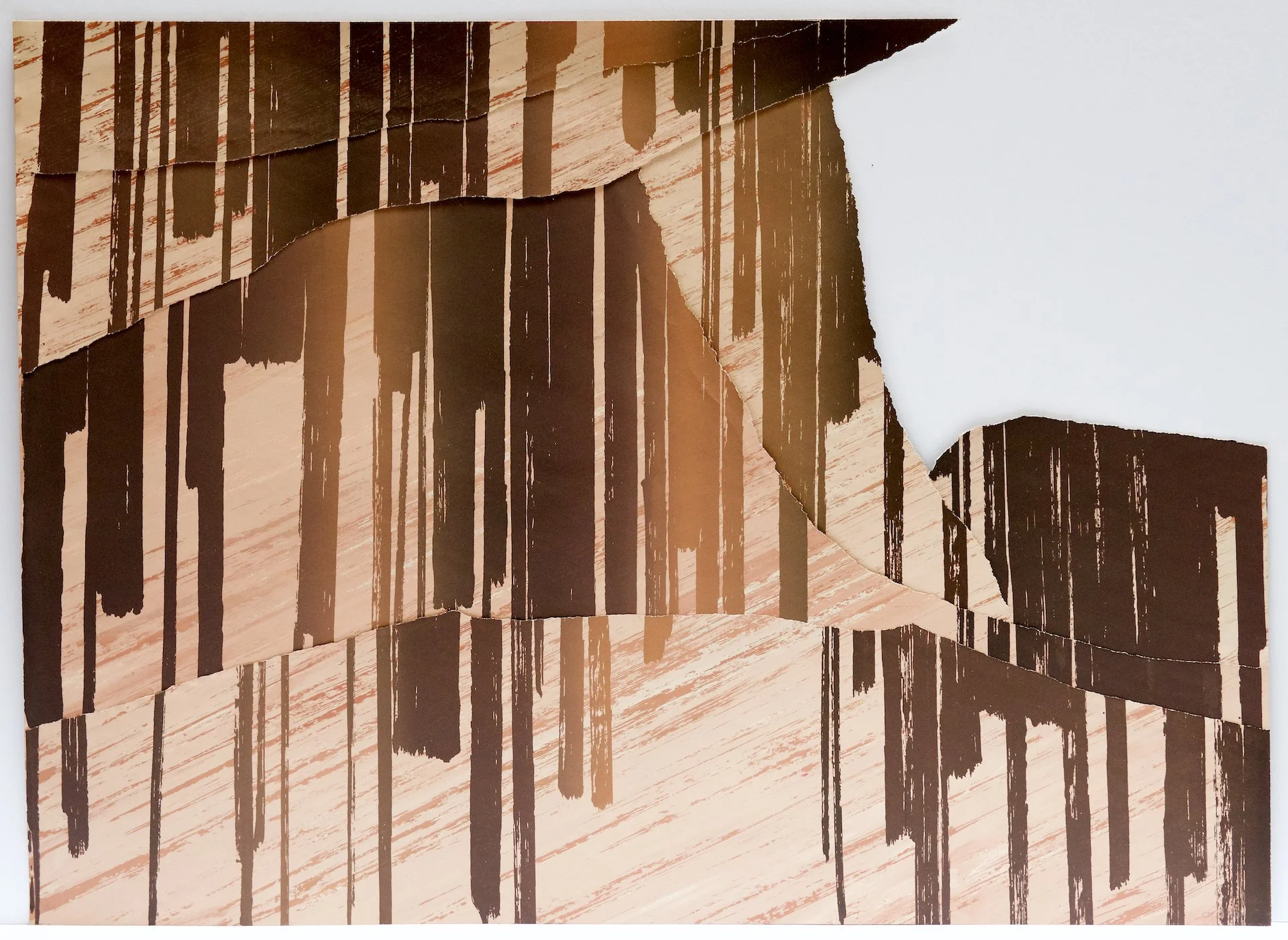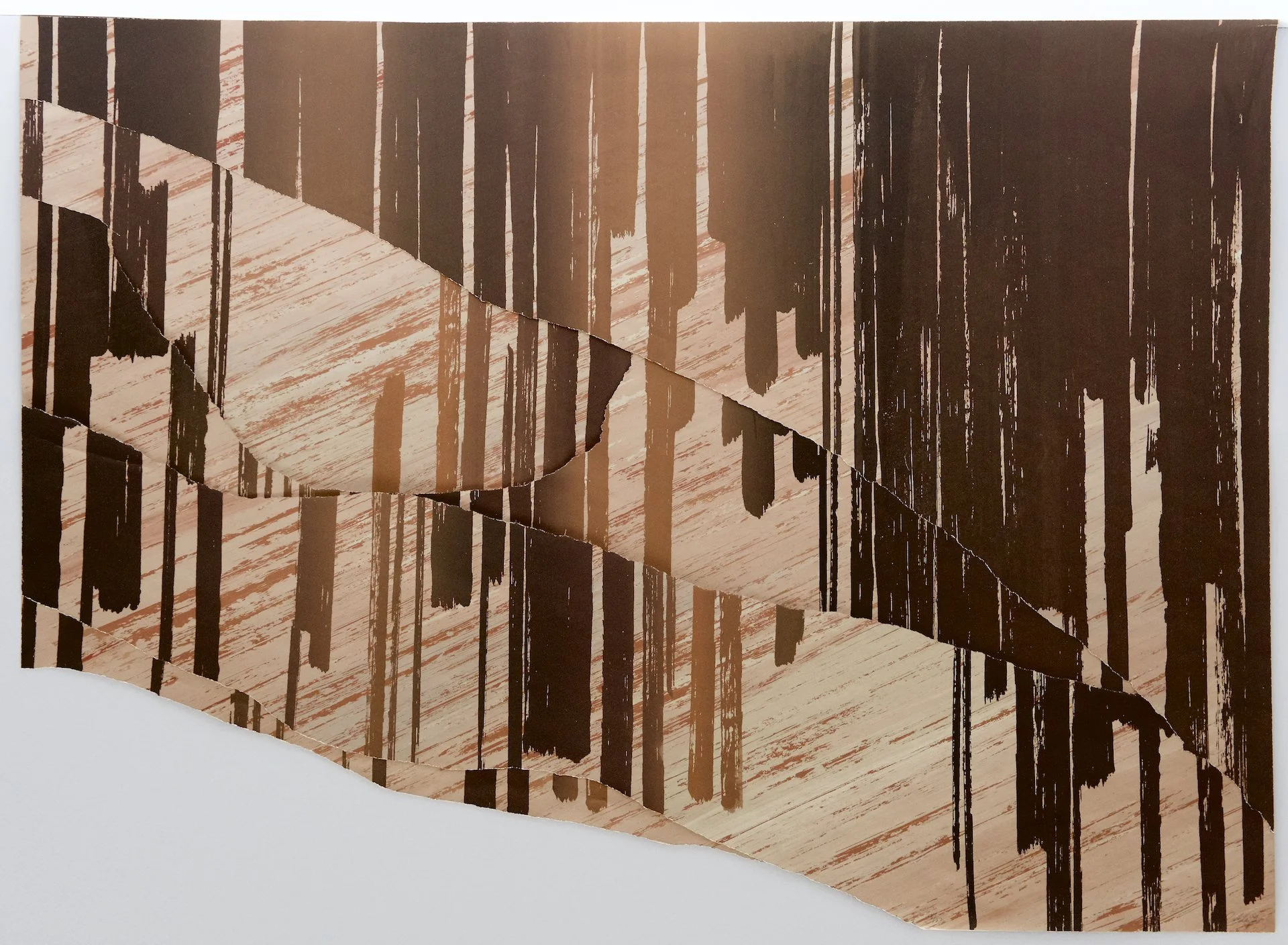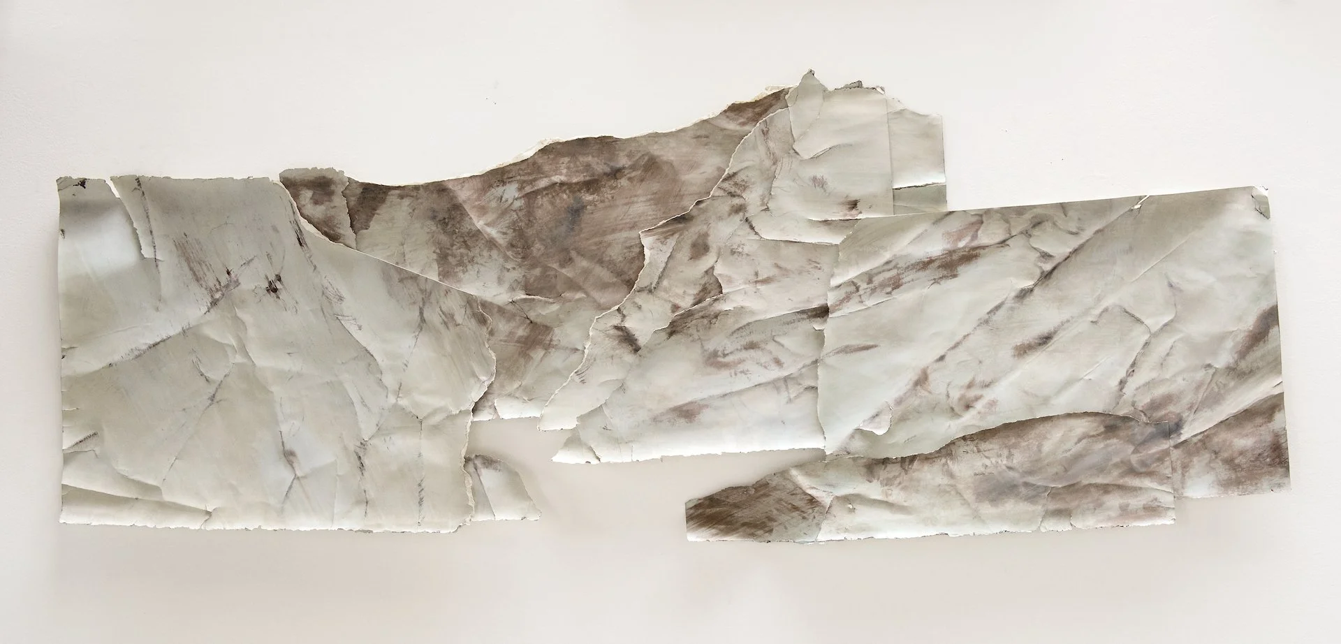 chemically and mechanically distressed paper silkscreens mimicking the forces of nature