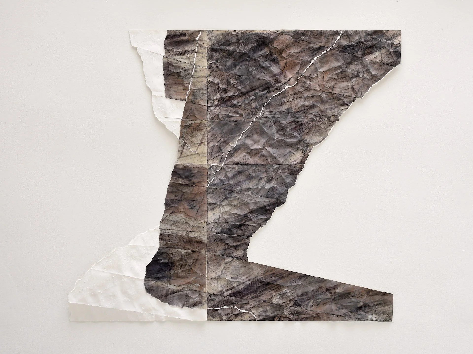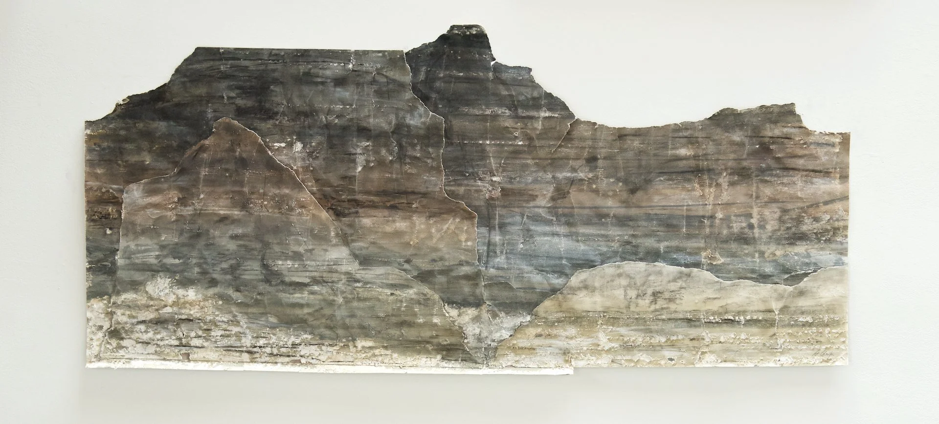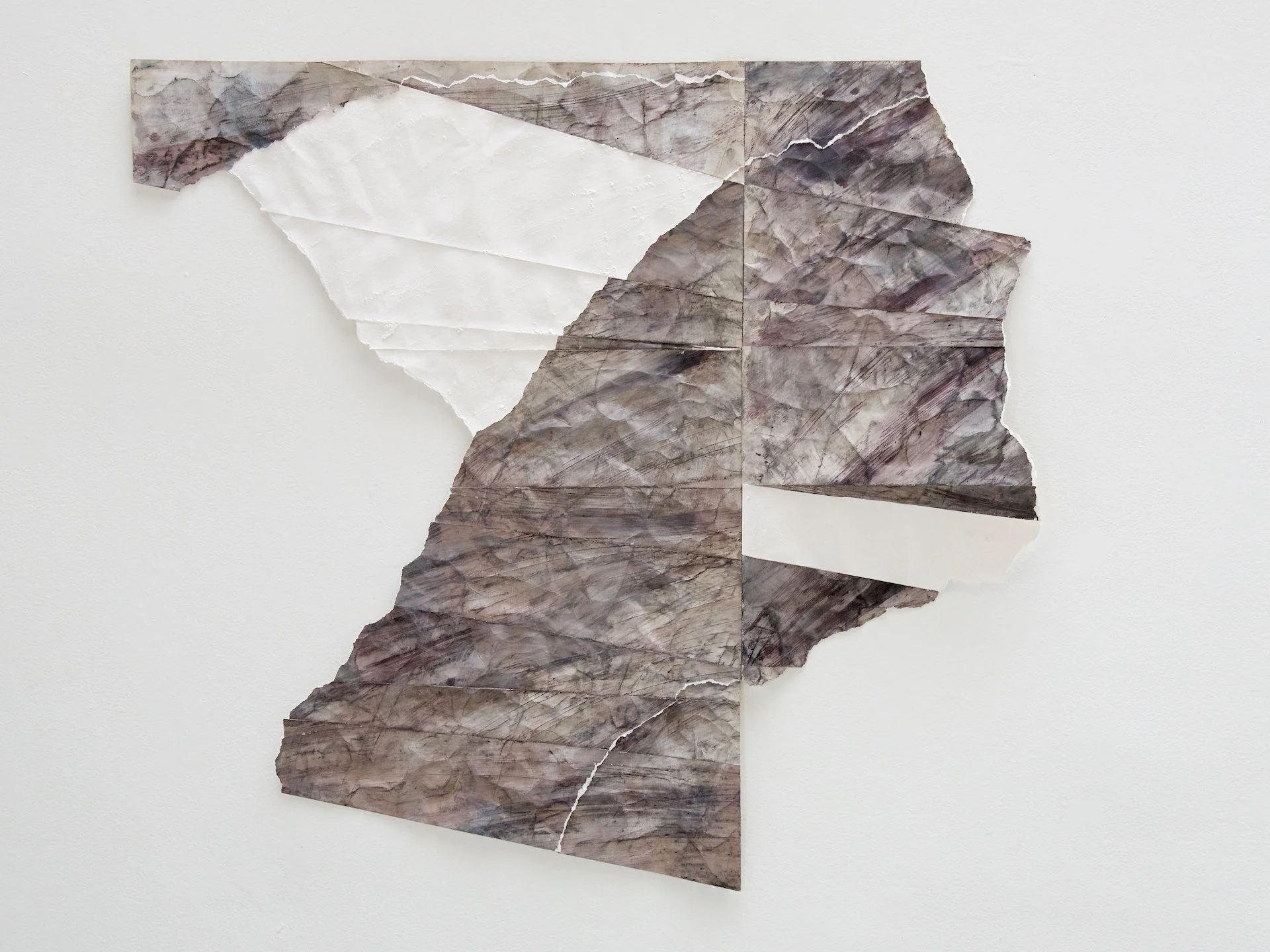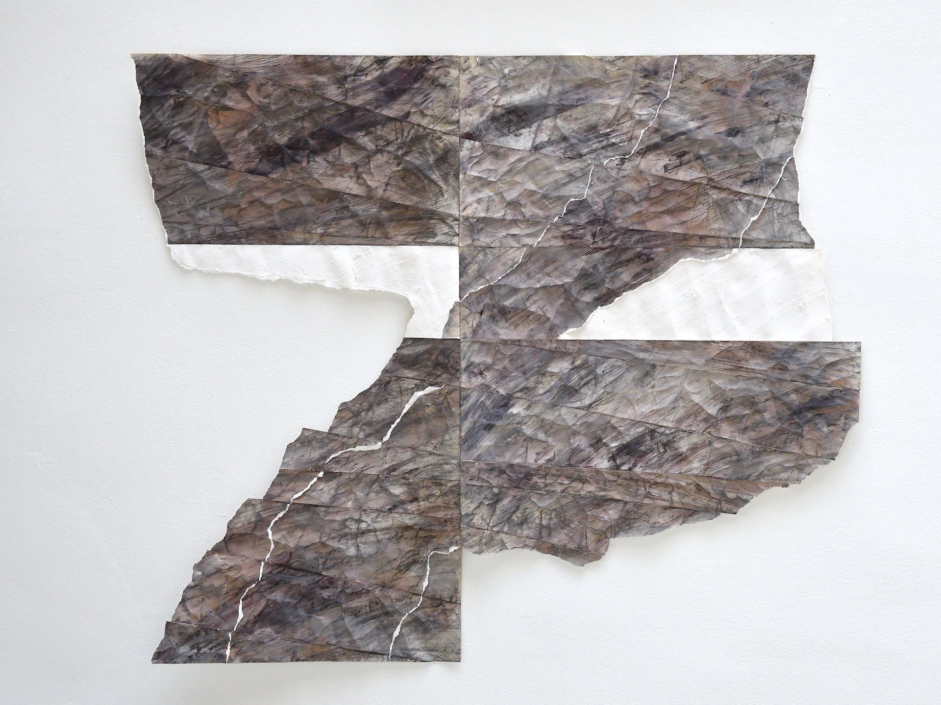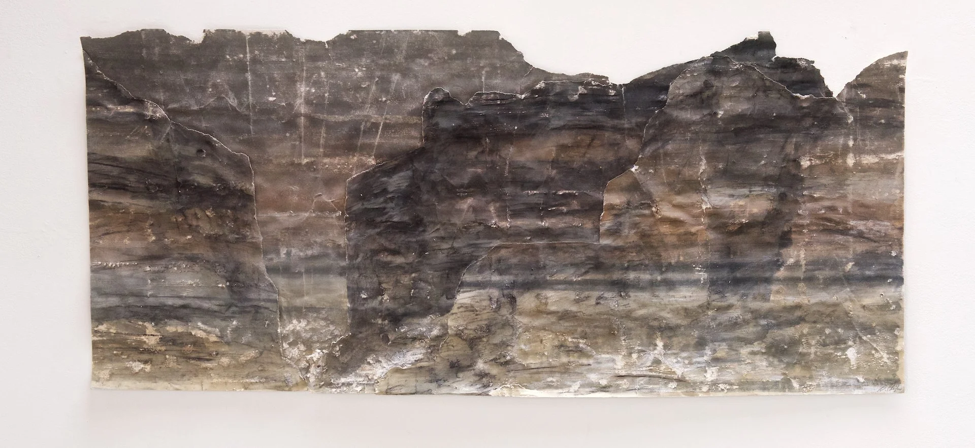 chemically and mechanically distressed paper silkscreens mimicking the forces of nature