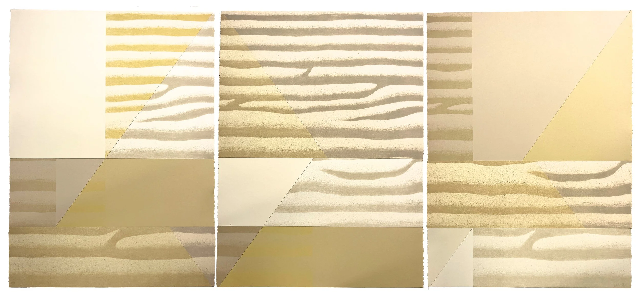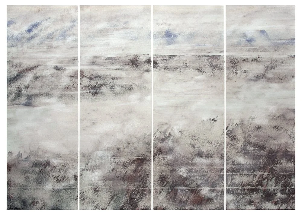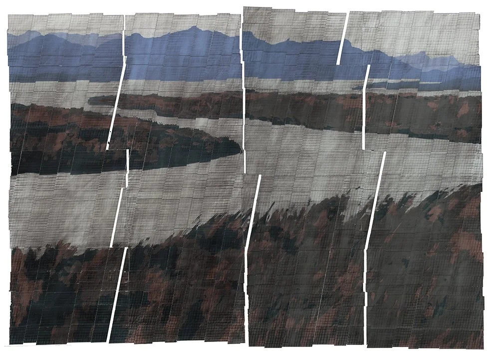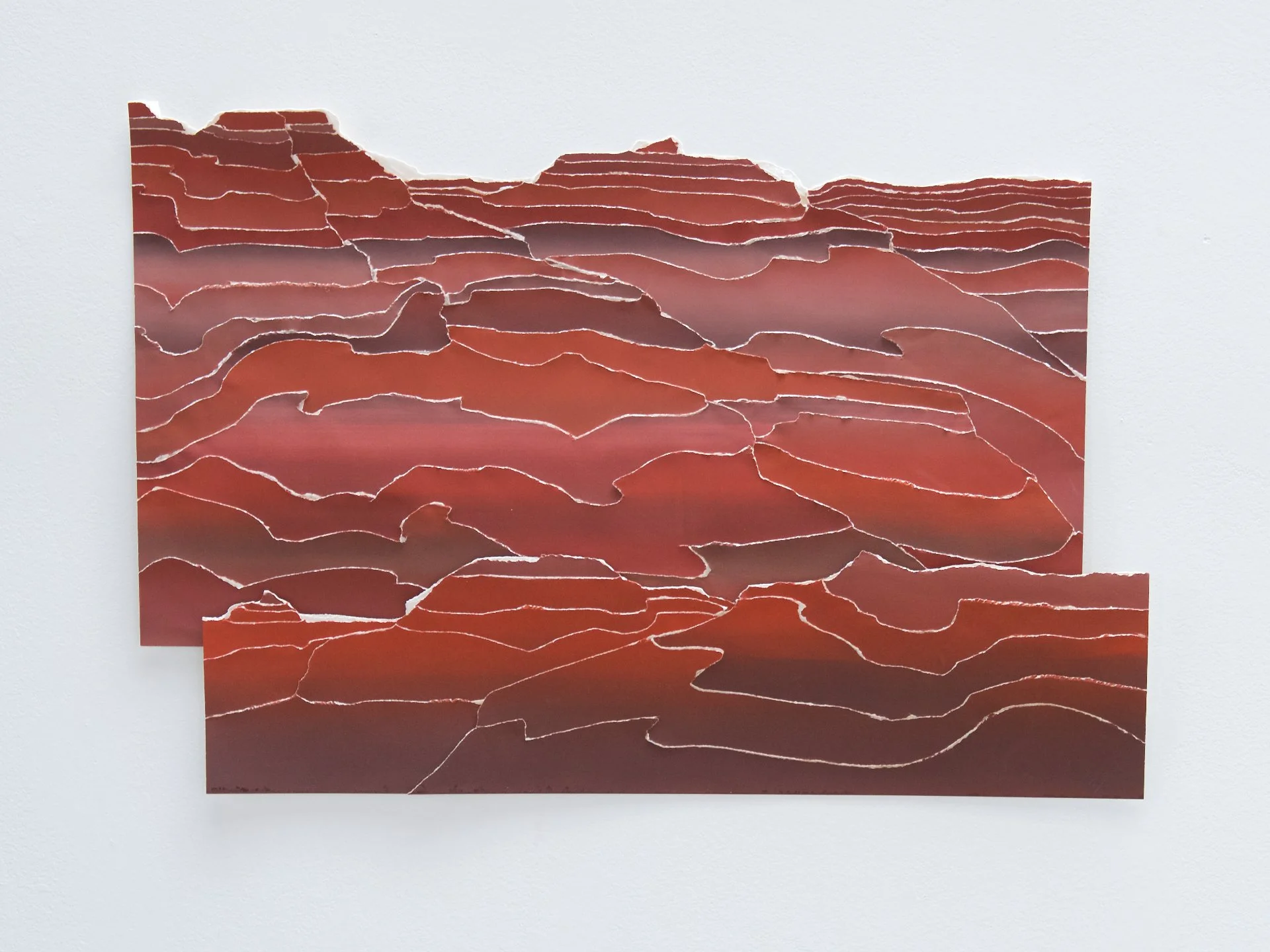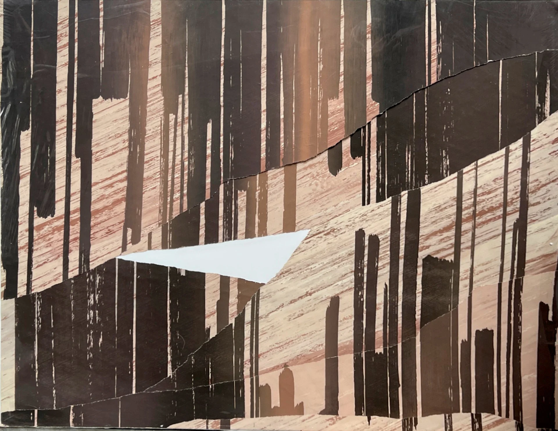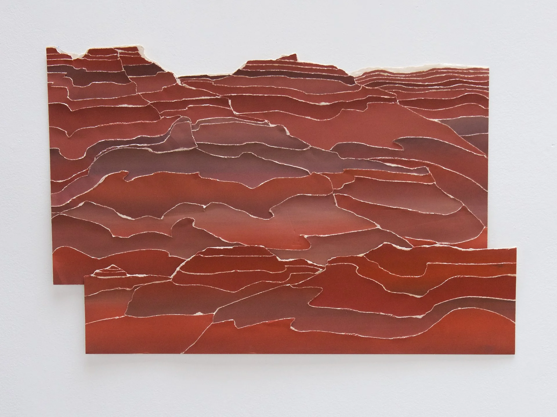 chemically and mechanically distressed paper silkscreens mimicking the forces of nature